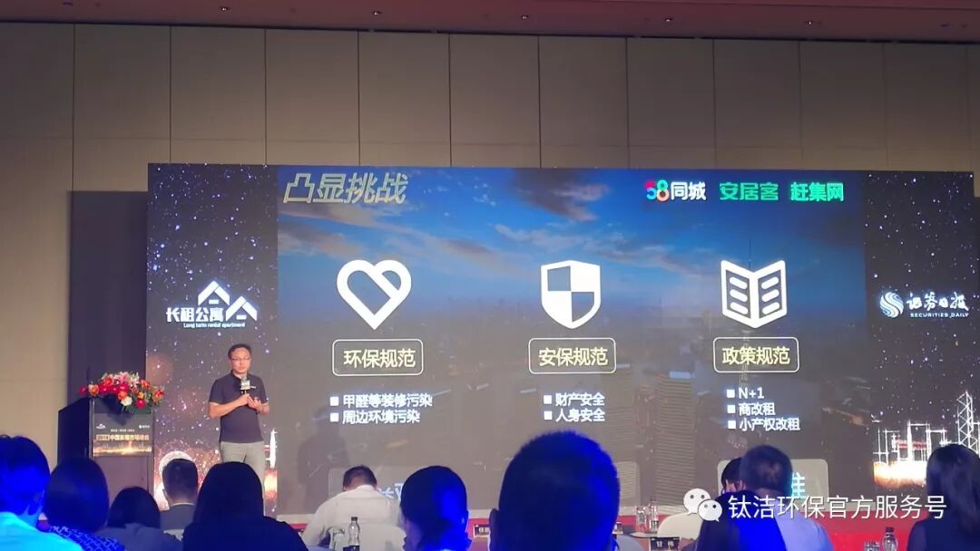9月7日,由证券日报社主办的“新业态、新变革、新需求--2018中国长租市场峰会”在京召开。经济日报社副总编辑郑波致辞,来自国内各大金融机构、长租公寓经营商及投资商等200余人参加了此次峰会。几乎囊括了全部长租公寓的头部运营商和服务商,并邀了众多行业领袖、业内专家和知名学者。北京钛洁环保科技股份有限公司作为人居环境健康泛产业链集成化运营平台及装修污染治理整体解决方案提供商,公司董事长、中国建筑装饰协会材料分会副秘书长欧阳林参加了本次峰会。